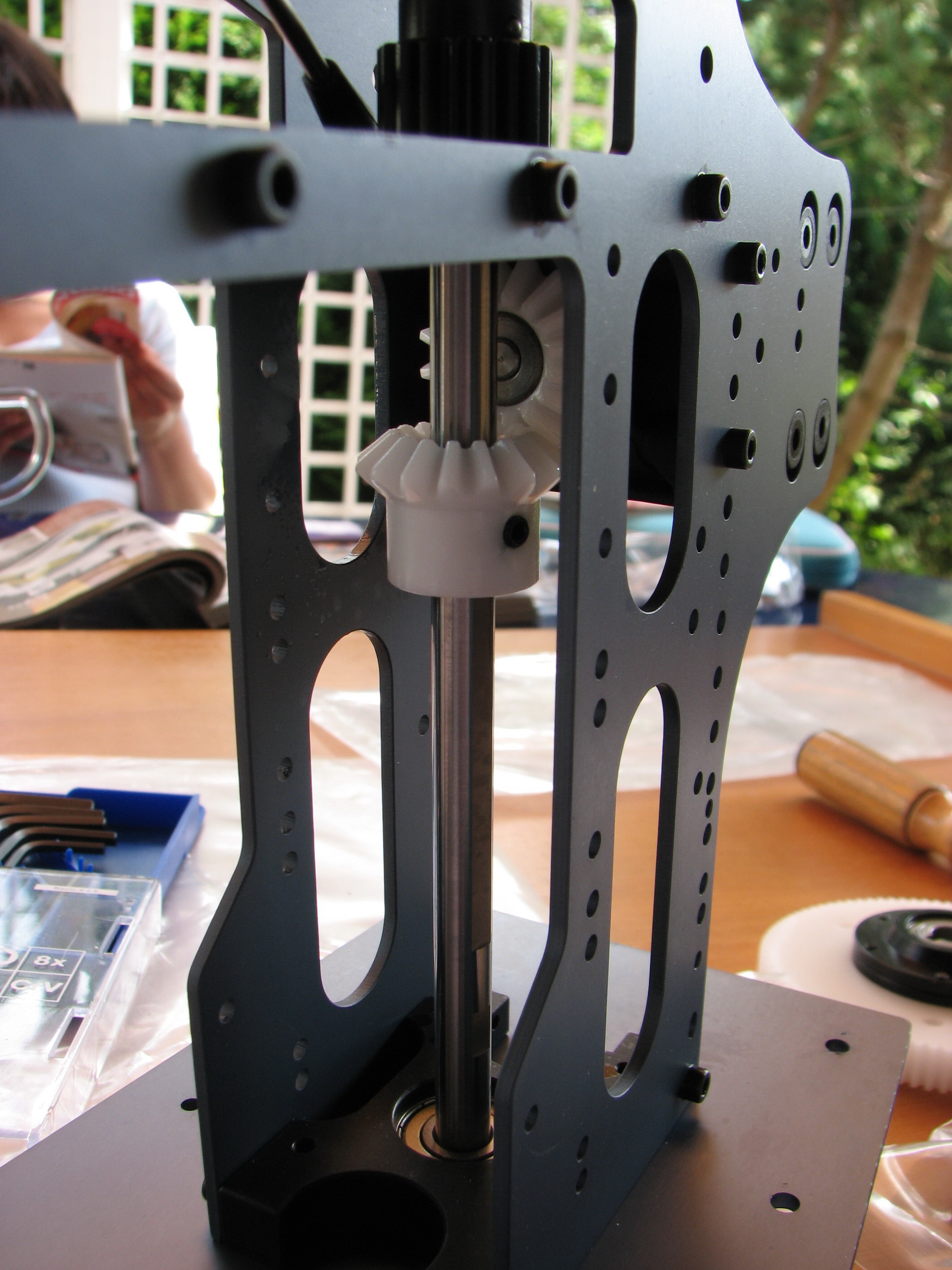 Das Kegelrad wird mit zwei Madenschrauben fixiert. Hier besonders auf festen Sitz achten und Schraubensicherungslack nicht vergessen!